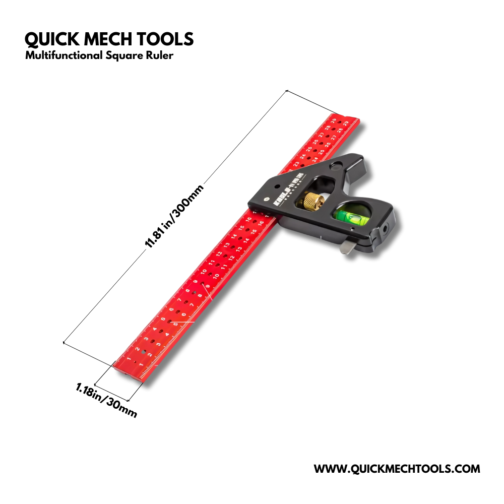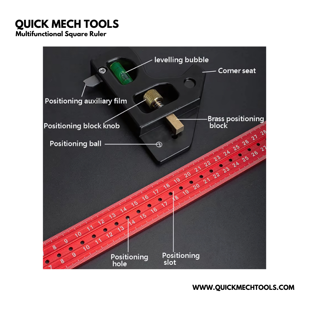 The Multifunctional Square Ruler is a high-precision measuring and marking tool designed for professional woodworkers, DIY enthusiasts, and craftsmen. Crafted from premium carbon steel and aluminum alloy, it combines accuracy, durability, and portability in one compact device. Its adjustable ruler limiter transforms any standard ruler into a precise marking tool for layouts, joints, and set-outs.