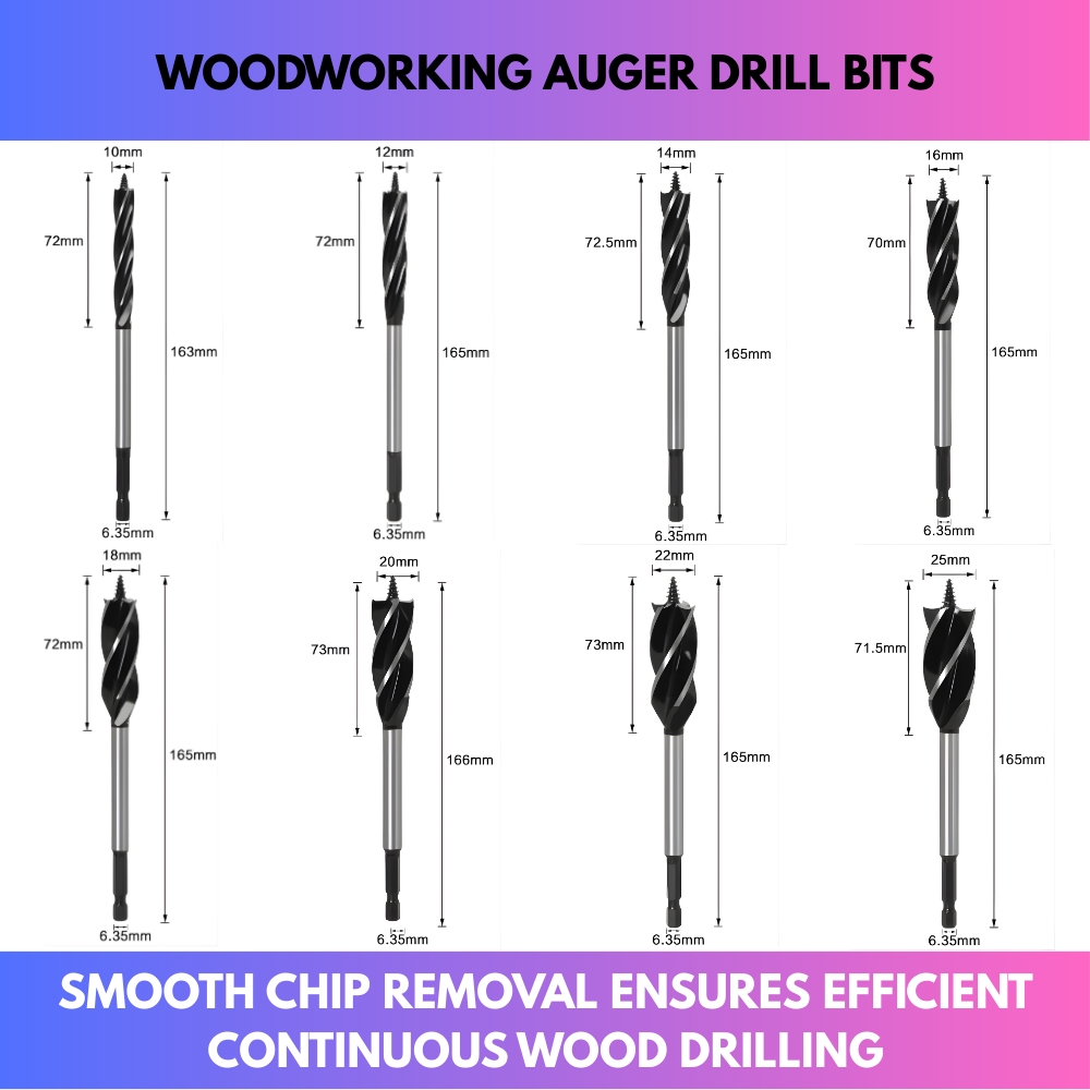 This is the essential drill bit set for any serious woodworker, builder, or tradesperson. It's not a standard twist drill; it's a set of high-performance augers engineered for rapid, deep, and incredibly clean hole drilling in any wood material, with or without a powerful drill.